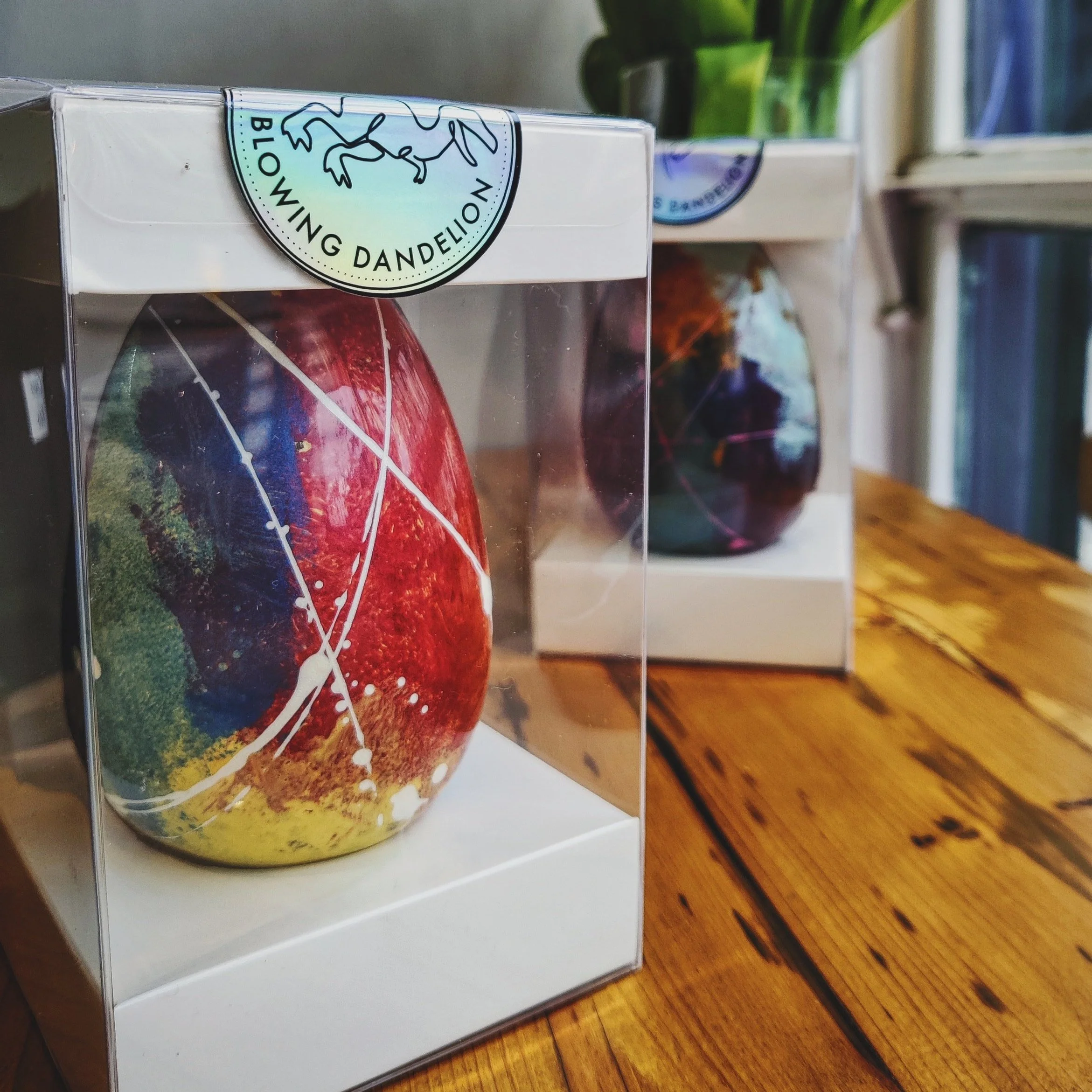 Almost too good to hide, celebrate this Easter with a hand painted luxury Easter Egg. All our eggs have been hand painted in an assortment of dazzling colours at our shop in Crystal Palace. Choose from either our Single Origin Milk or Dark Ecuador Chocolate and our Easter Bunny will pop your egg in the post!